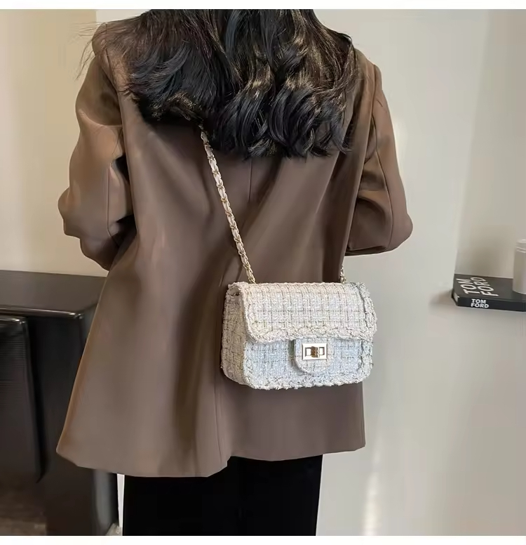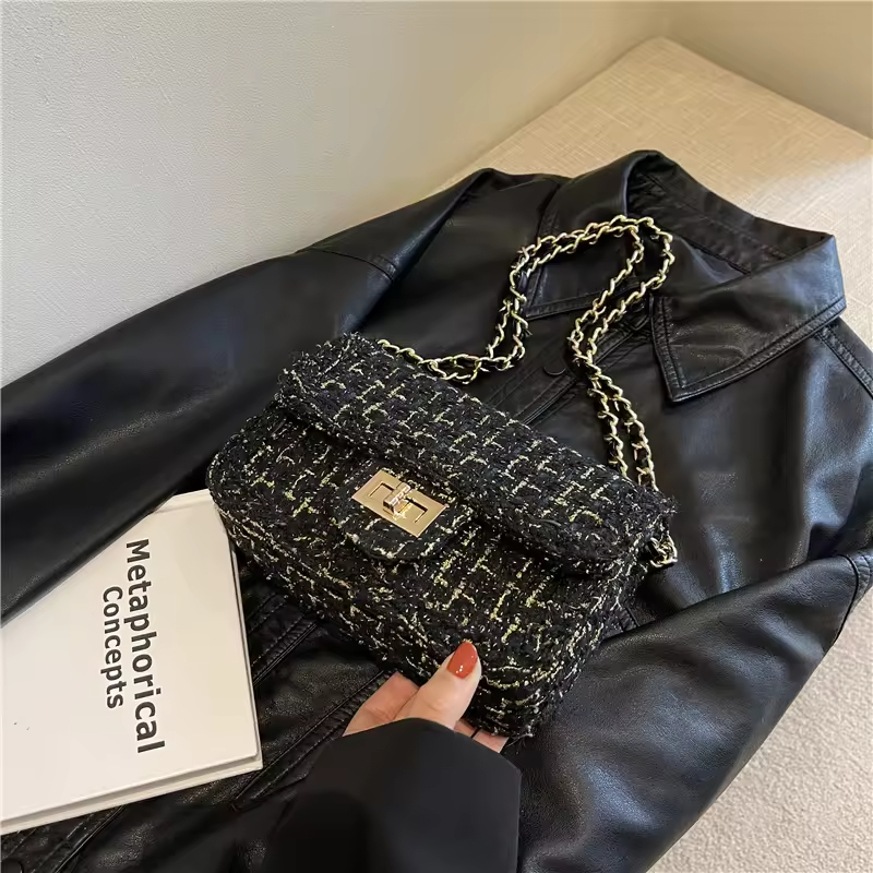 • Famous Brand Designer Tweed Classic Flap Small Woman Crossbody Bag Ladies Chain Handbags New Fashion Women'S Shoulder Bags