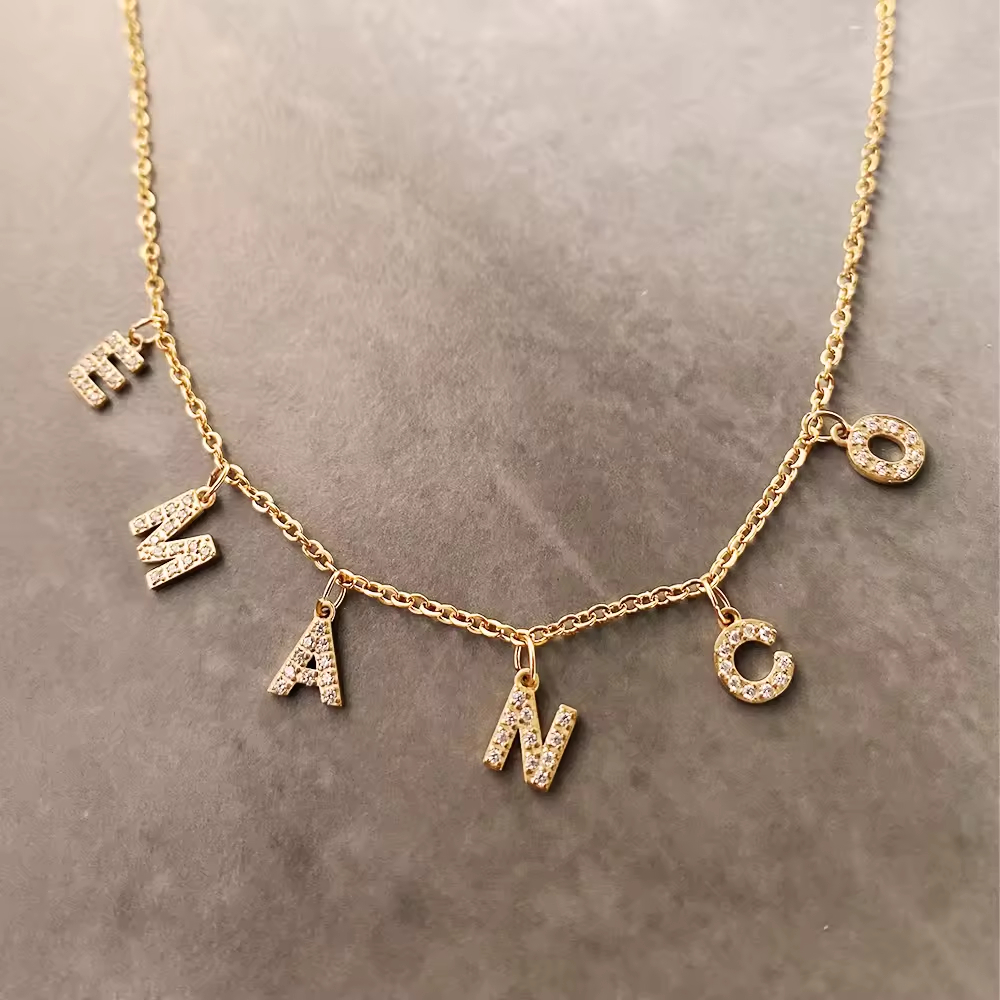 • Stainless Steel Micro Inlaid Zircon Letter Personalized Name Necklace DIY Customized Name Necklace Dropshipping